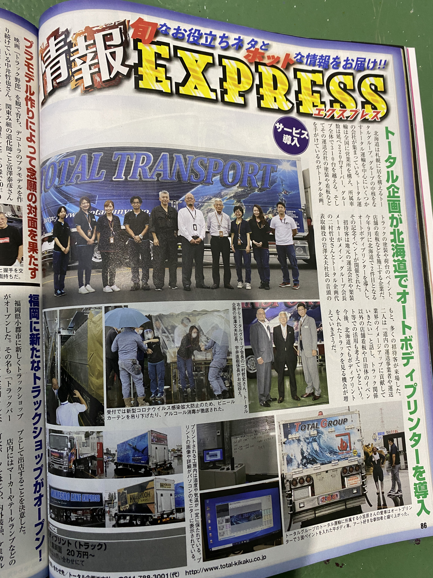 会場内には施工したトラックなど10台ほどを展示、施工スタジオ内では実際に大型トラックをプリントしている様子をご覧頂きました。